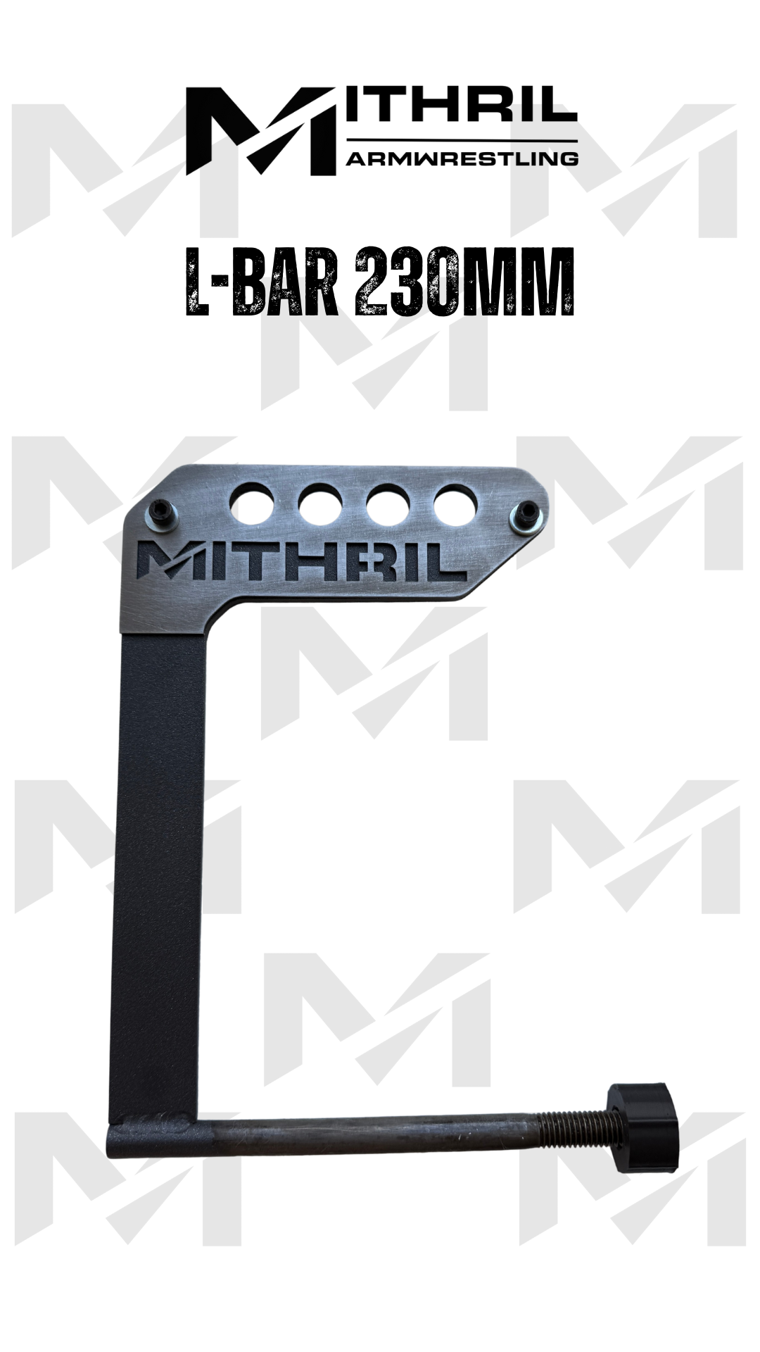 The 230mm L-Bar is a reinforced metal handle specifically designed for training with upper cable systems. Its extended length provides optimal range and control for exercises targeting wrist, forearm, and grip strength under vertical or upward tension. Perfect for advanced armwrestling training, the 230mm L-Bar ensures maximum durability and versatility when combined with various handle attachments, making it an essential tool for athletes focused on complete upper-arm and hand development.