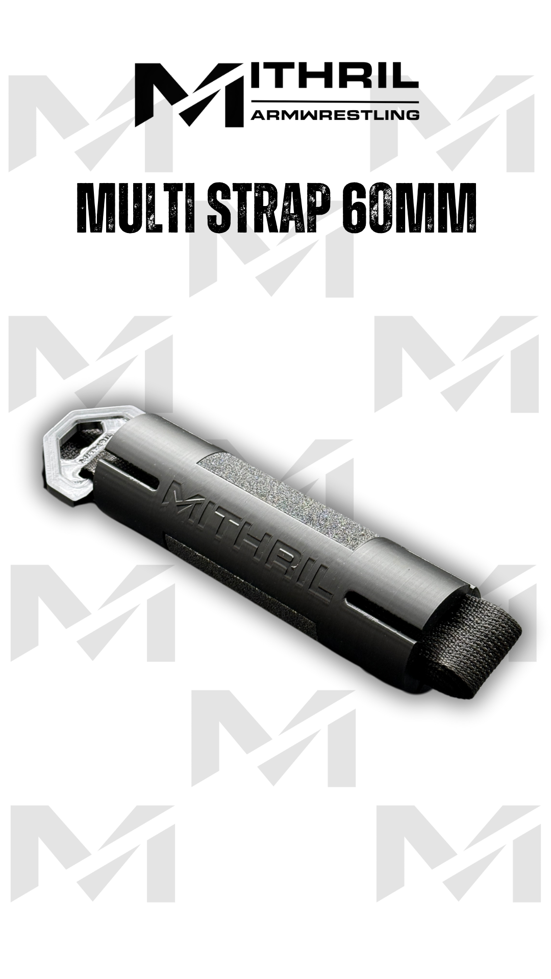 The Multi Strap PRO 60mm is a versatile training tool that combines the functionality of a regular strap handle and a multispinner, allowing for dynamic two-vector motion exercises. This innovative design enables athletes to target multiple muscle groups simultaneously, enhancing grip strength, pronation, and wrist stability. Durable and adaptable, the Multi Strap is perfect for armwrestlers seeking to diversify their training and achieve superior results in both strength and technique development. The handle changes its functionm depending on the strap position and wrapping method!